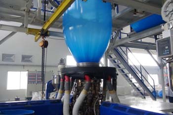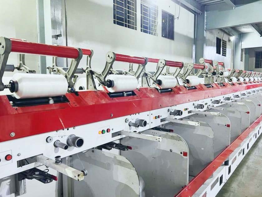 Polypropylene Multifilament Extruder machine with a 150 Kg/Hr capacity, accommodating yarn ranging from 600 to 2200 Deniers.